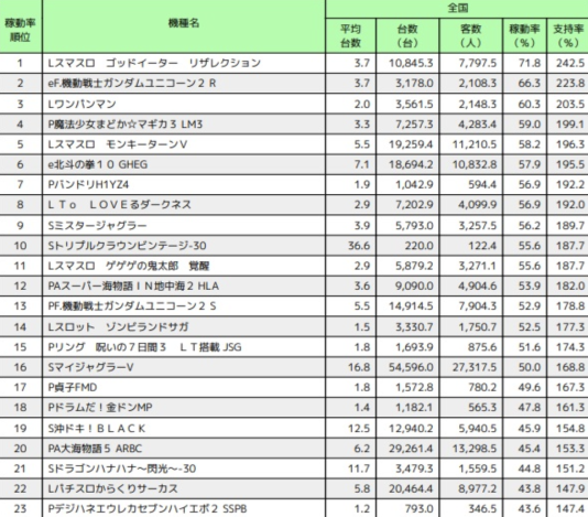 市場の衰退と連動して新台機種の集客が低下します。