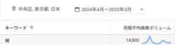 顧客欲求は検索数に表れます。だから鰻という検索数も多いです。