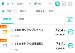 直近の稼働率はスマスロとある科学の超電磁砲2に